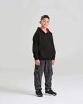 Standard fit with brushed inner fleece, Twin needle stitching detail, Double fabric hood with contrast inner, No drawcords to comply with EU regulations, Kangaroo pouch pocket, Ribbed cuffs and hem, Tearaway label, 100% cotton faced fabric, *Heather Grey: 75% ringspun cotton, 25% polyester, *Charcoal: 52% ringspun cotton, 48% polyester, Age: 3/4yrs 5/6yrs 7/8yrs 9/11yrs 12/13yrs
