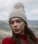 50% recycled polyester/34% nylon/13% acrylic/3% elastane. Heavy ribbed knit.Soft touch fabric.Retro styling.Cuffed design.Luxury faux fur pom pom.Tear out label.